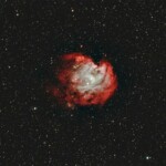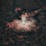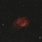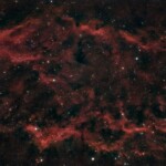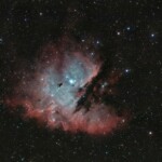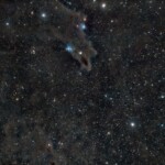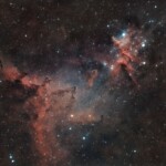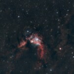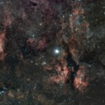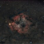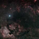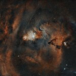 IC405 : nébuleuse de l’étoile flamboyante, accompagnée de IC410 (NGC 1893) la nébuleuse du Têtard dans la constellation du Cocher – (traitement SHO)