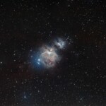 IC405 : nébuleuse de l’étoile flamboyante, accompagnée de IC410 (NGC 1893) la nébuleuse du Têtard dans la constellation du Cocher