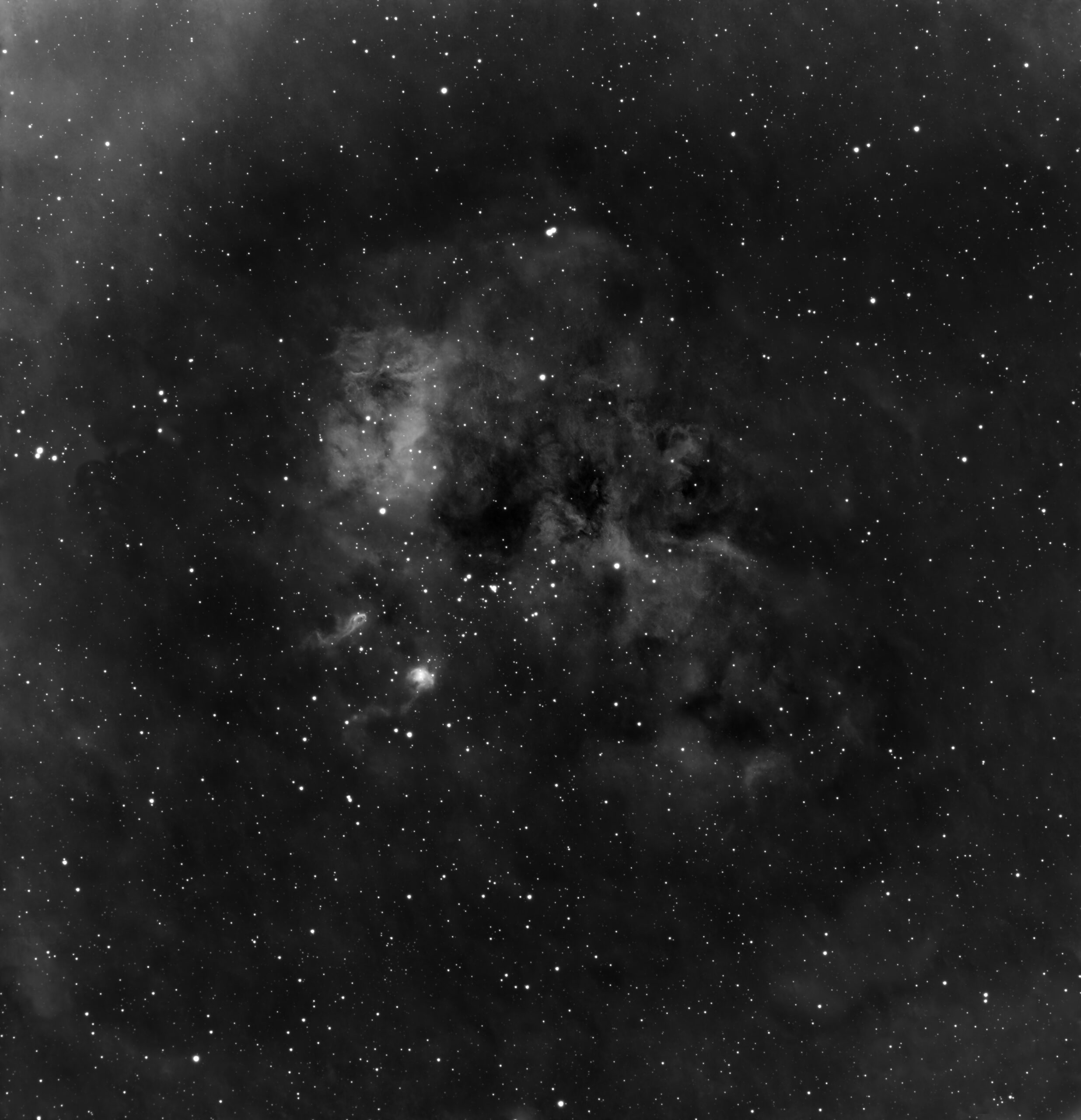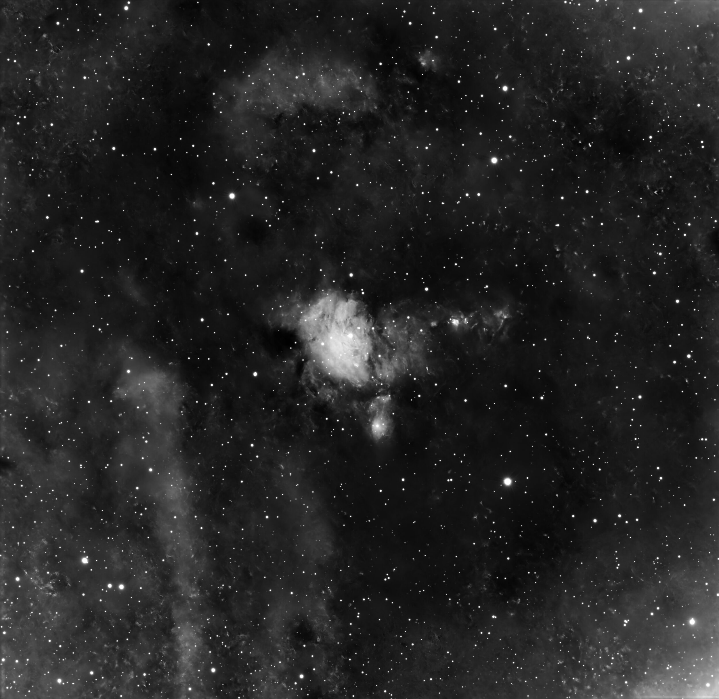 c’ est une nébuleuse à émission située à environ 12000 années-lumière de la Terre dans la constellation du Cocher. Dimension apparente 40′ (la partie lumineuse d’IC410 fait la taille apparente de la Lune) et de magnitude 10. Le lumineux nuage d’hydrogène mesure plus de 100 années-lumière de long. Il a été sculpté par les vents stellaires et les radiations émis depuis l’amas ouvert d’étoiles NGC1893 niché en son sein. Le nuage contient deux structures notables, les « têtards ». S’étalant sur environ 10 A.L, ces amas gazeux seraient eux-mêmes des pouponnières d’étoiles. Les queues de ces têtards cosmiques sont le résultat direct de la pression des radiations et des vents stellaires de l’amas ouvert proche NGC1893.
