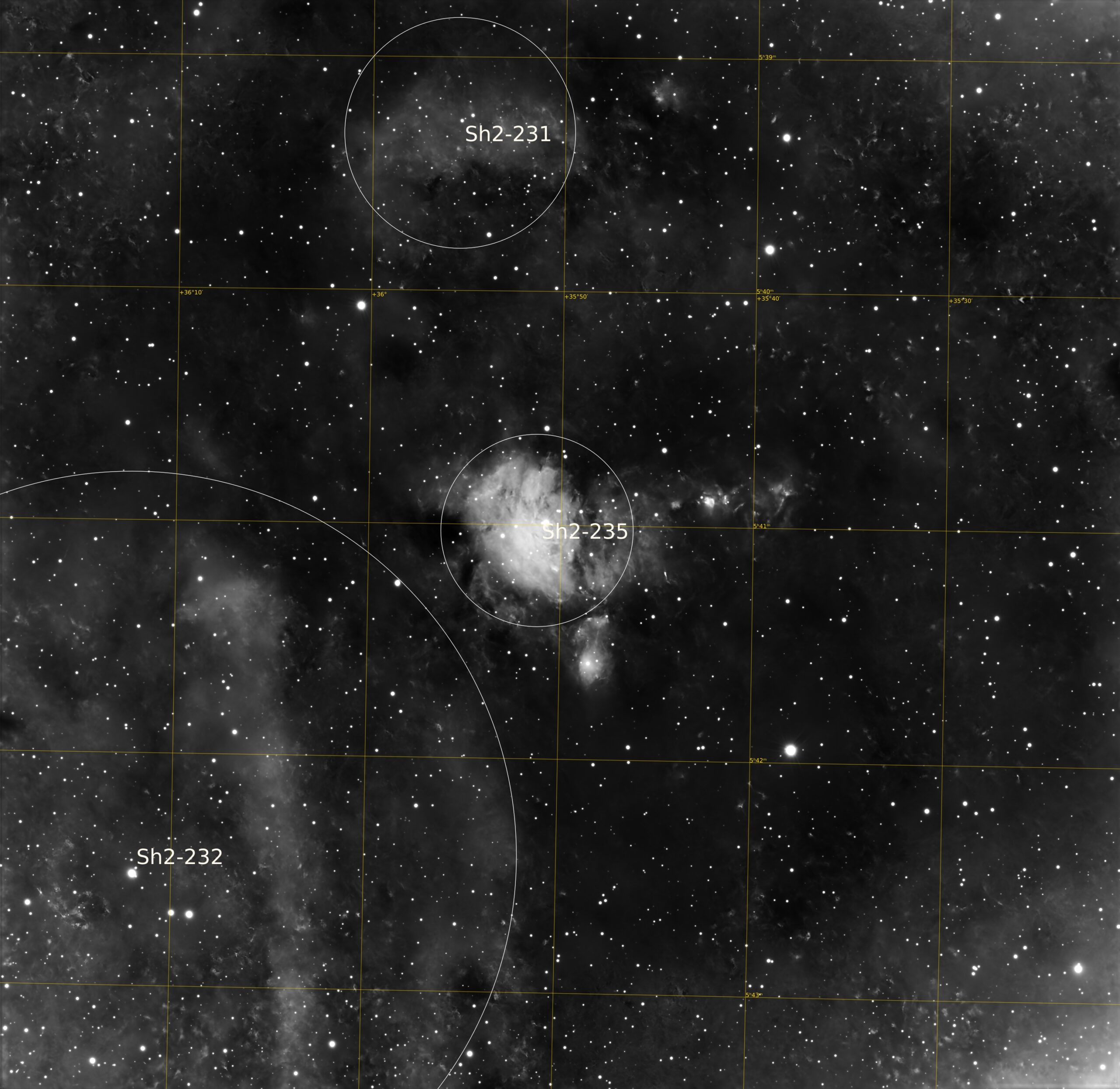 Nébuleuses :Sh2-231 Sh2-232 Sh2-233 Sh2-235