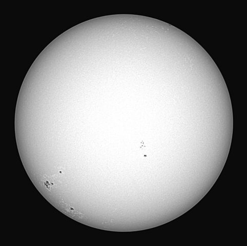 Ci dessous : suivi photographique personnel des tâches solaires sur la photosphère (photos réalisées avec un 800mm Samyang de 2008 ou avec une lunette FL80 de 1998 ; Les photos au 800 ne sont pas d’une netteté époustouflante ! Celles de la lunette Vixen FL80 sont de bien meilleure qualité…) et depuis mars 2025 de la chromosphère (Lunette ST 76/630 Heliostar Skywatcher) :
