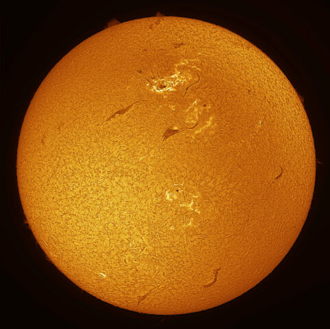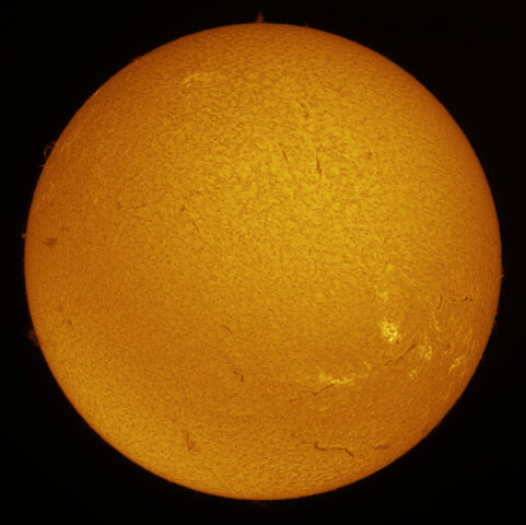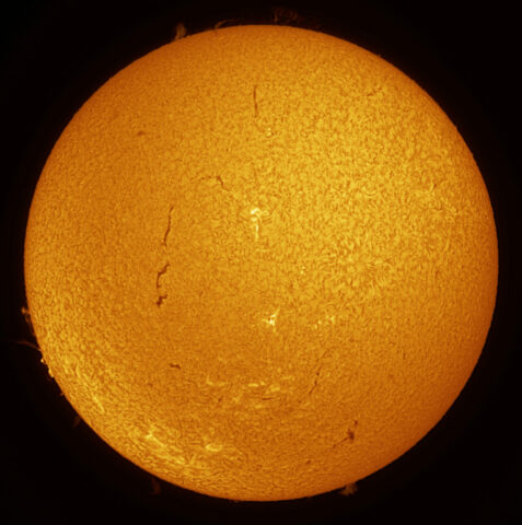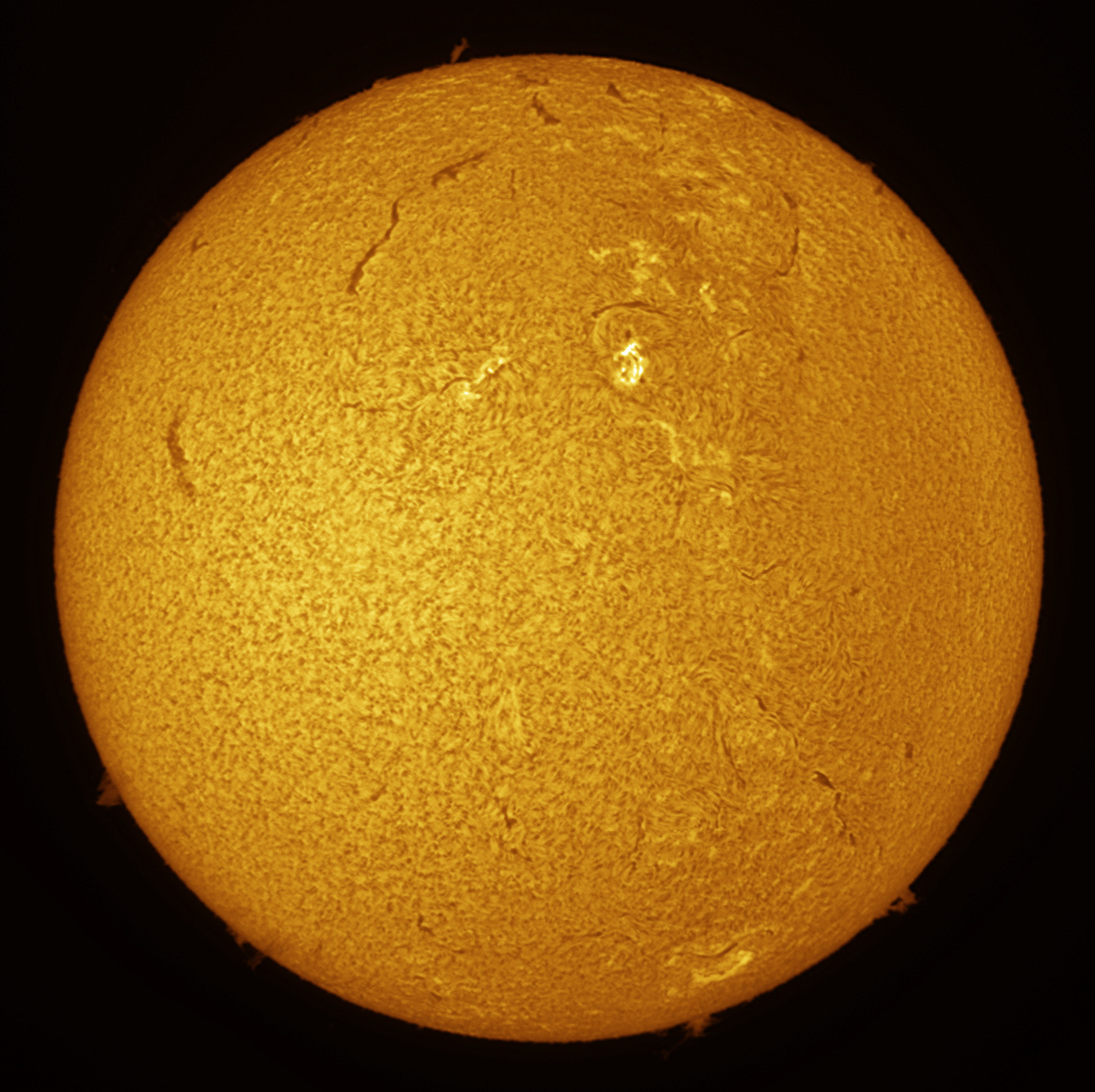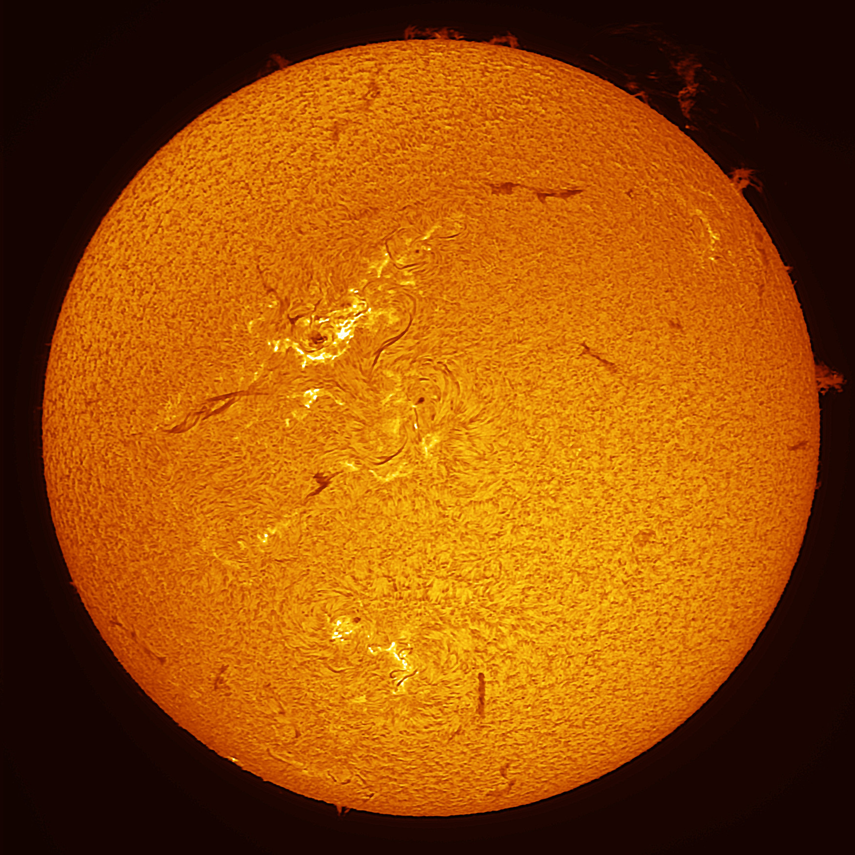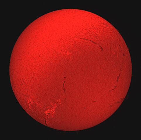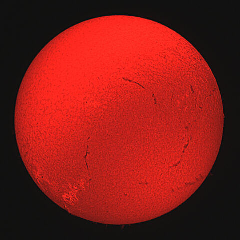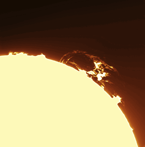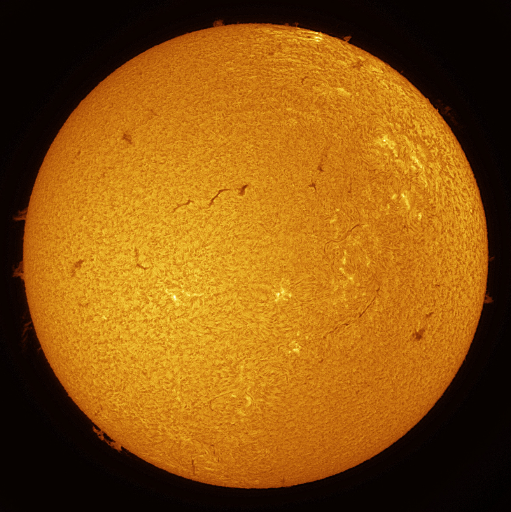 Chromosphère (Heliostar 76/630 Skywatcher + EOS Ra (rouge) puis Player-One Aes MPro (jaune)) :