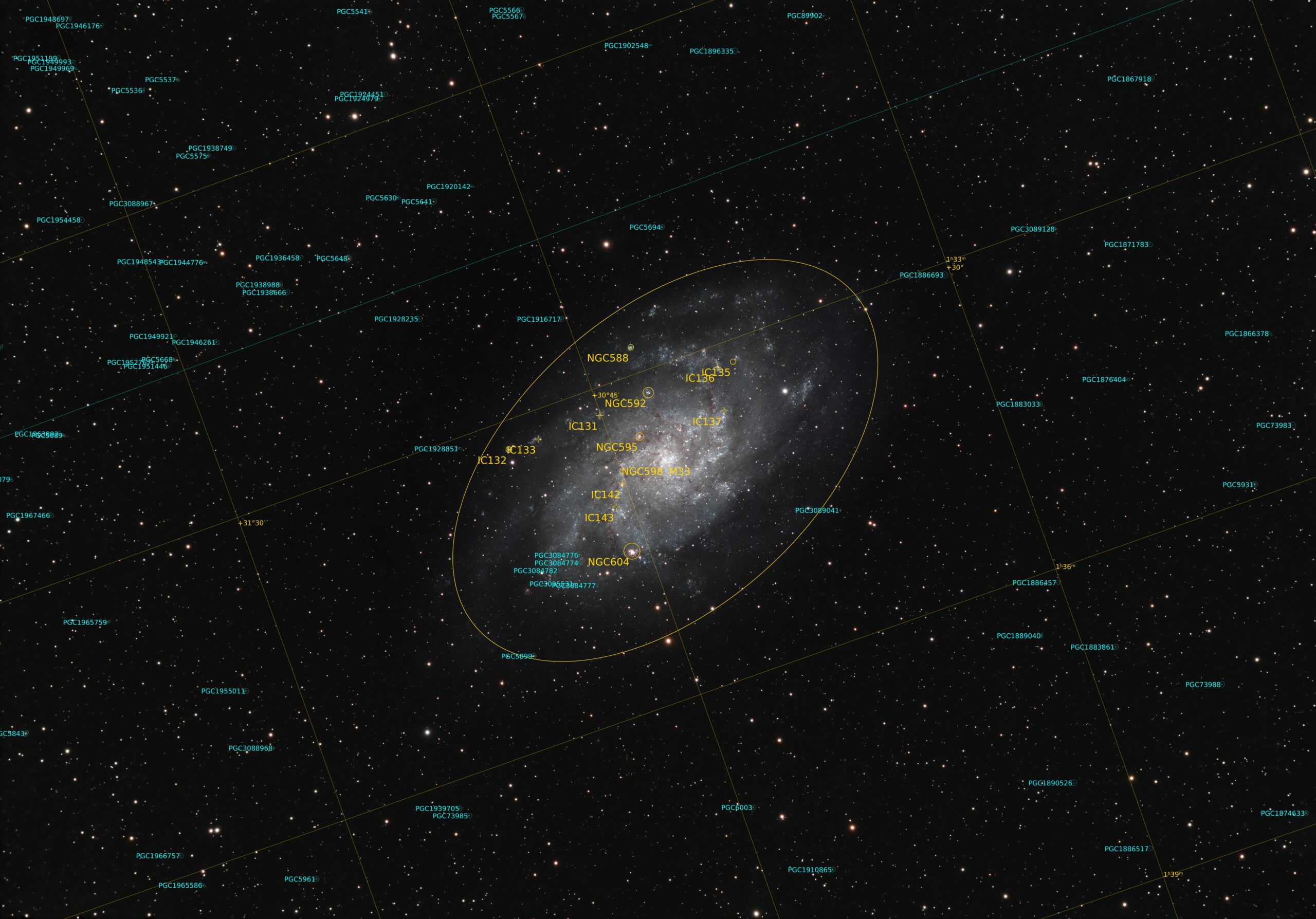 M33 – Cerizols le 9 10 2023 – C9,25×0,7 EOSRA LPro – 140x90s à 3200iso